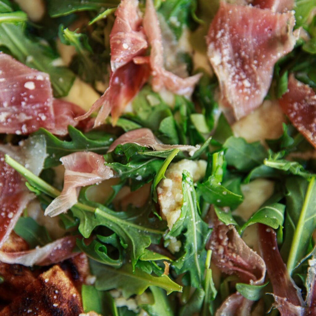 The “Emilia Pizza”, from Fiorellino: The Emilia Pizza is crafted with authentic ingredients that are sure to transport you directly to Emilia-Romagna after a single bite! These ingredients include Parmigiano Reggiano DOP, Prosciutto di Parma DOP, and Aceto Balsamico di Modena IGP layered over freshly made passata di pomodoro.