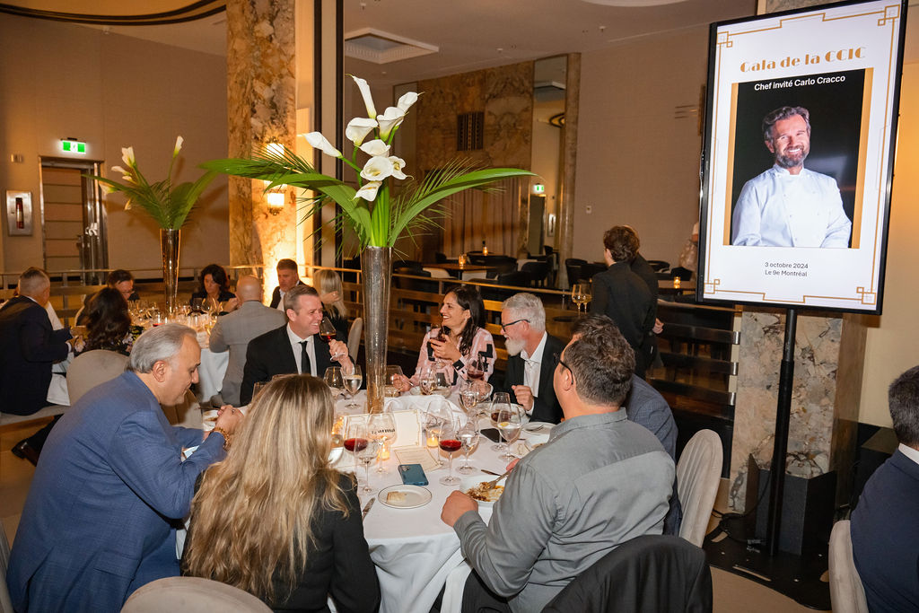 Le 3 octobre dernier, Montréal a été le théâtre d’une soirée d’exception, qui restera gravée dans les mémoires comme l’un des événements culinaires les plus marquants de l’année. Plus de 220 membres, partenaires, collaborateurs et amis de la CCIC se sont réunis au sein de la salle emblématique du restaurant Le 9e pour vivre une expérience sensorielle hors du commun, orchestrée par nul autre que le Chef multi-étoilé Carlo Cracco.